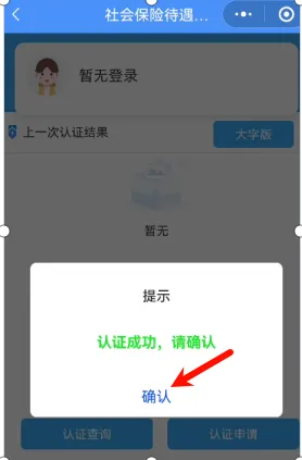 第六步,识别成功后,会提示认证成功,点击“确认”,即可进入认证结果页面。
