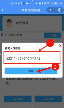 第二步,在认证查询页面,输入需查询的身份证号,点击“查询”按钮进行查询。